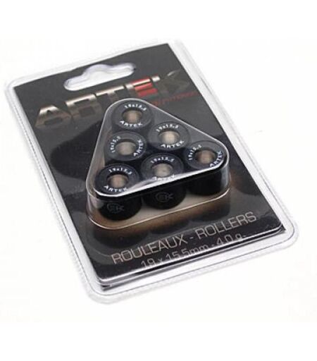 kit galet rouleau de variateur neuf de marque Artek. Caractéristiques: - Diamètre extérieur: 19mm - Largeur: 15,5mm - Poids: 4 grammes - Coloris: noir Vendu par 6 unités. Livré conforme à la photo. ...