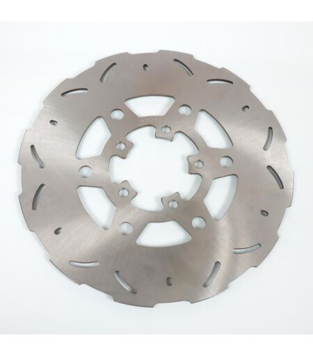 Disque de frein acier wave neuf. Dimensions: - Diamètre extérieur: 260mm - Diamètre intérieur: 60mm - Épaisseur: 4mm - Nombre de trous: 5 - Diamètre des trous de fixation: 8.5mm - Entre axe des trous de fixation: 80mm - Déport: 0 Vendu à l'unité. Livré conforme à la photo. ...