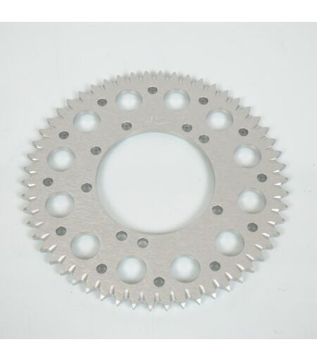 Couronne de transmission anti-boue neuve en aluminium de 54 dents au pas 428 coloris aluminium. Dimensions: - Diamètre intérieur: 100mm - Épaisseur: 7mm - Nombre de trous: 8 - Diamètre trous: 8.5mm - Entre axe des trous: 116mm Vendue à l'unité. Livrée conforme à la photo. ...