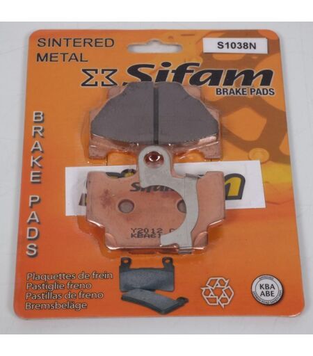 Plaquette de frein métal fritté sport neuve. Dimensions: - Longueur: 68mm - Largeur: 58.6mm - Épaisseur: 10.7mm 100% des plaquettes SIFAM sont de qualité "SINTERED METAL". Elles conviennent parfaitement aux motos puissantes. Performances de freinage stables et accrues pour les freins avant et arrière. Haut niveau de confort, longue durée de vie dans diverses conditions telles que les routes humides, les changements de températures. Elles disposent de la norme KBA/ABE. Cela signifie que les matériaux de friction répondent aux critères les plus stricts selon les normes Européenne. Vendue par paire. Livrée conforme à la photo. ...