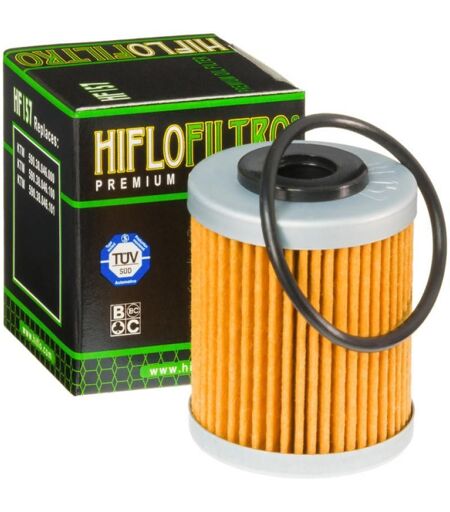 Filtre à huile papier neuf de marque Hiflofiltro référence HF157 en remplacement des références d'origine: - KTM: 590.38.046.000 / 590.38.046.100 / 590.38.046.101 / 590.38.046.144 - Polaris: 2520755 - Diamètre: 41mm - Longueur: 52mm Vendu à l'unité. Livré conforme à la photo. ...