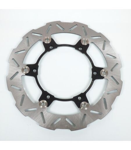 Disque de frein avant flottant acier wave neuf. Dimensions: - Diamètre extérieur: 260mm - Diamètre intérieur: 124mm - Épaisseur: 4mm - Nombre de trous: 6 - Diamètre des trous de fixation: 6.3mm - Entre axe des trous de fixation: 135mm - Déport: 0 Vendu à l'unité. Livré conforme à la photo. ...