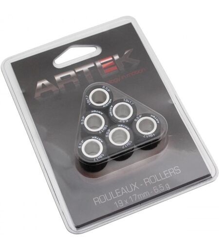 kit galet rouleau de variateur neuf de marque Artek. Caractéristiques: - Diamètre extérieur: 19mm - Largeur: 17mm - Poids: 6,5 grammes - Coloris: noir Vendu par 6 unités. Livré conforme à la photo. ...