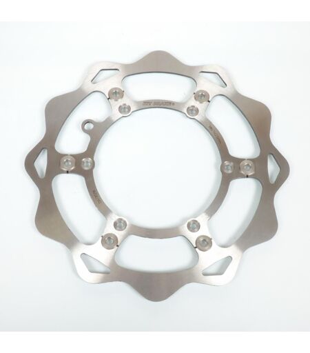 Disque de frein avant flottant acier wave neuf. Dimensions: - Diamètre extérieur: 270mm - Diamètre intérieur: 127.5mm - Épaisseur: 3mm - Nombre de trous: 6 - Diamètre des trous de fixation: 6.5mm - Entre axe des trous de fixation: 143mm - Déport: 0 Vendu à l'unité. Livré conforme à la photo. ...