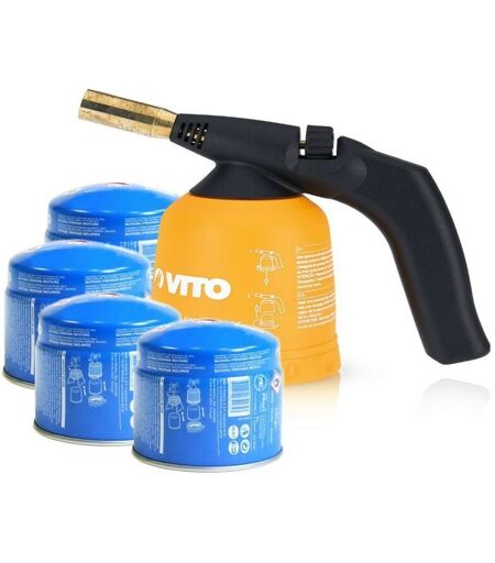 Vito - Lampe a souder à gaz abs Allumage piezo + 4 Cartouches de gaz 190gr Perçables