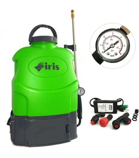 Pulvérisateur Electrique à Batterie 16L Batterie lithium 12V 8 Ah Chargeur + 3 buses + Manomètre IRIS GARDEN