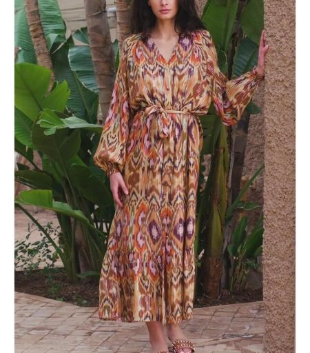 La Petite Etoile Robe imprimée RIBELLA aztek en viscose ocre T2 female
