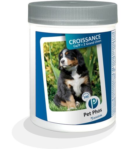 Pet Phos® Croissance Ca/P = 2 grands chiens Pet Phos® Croissance Ca/P = 2 est un aliment minéral spécialement formulé pour les chiots de grandes races. Il contient des minéraux essentiels tels que le calcium et le phosphore dans un rapport 2:1 pour favoriser une croissance osseuse saine. De plus, il soutient la vitalité générale et peut être utilisé chez les chiennes en lactation. La recette appétissante garantit une administration facile. Application: Nourrir quotidiennement selon les directives de dosage indiquées sur l'emballage, adaptées au poids et à la phase de vie du chien. Ingrédients : Calcium 15,5 %, phosphore 7,5 %, sodium 0,1 %, magnésium 0,05 %. Contient des vitamines A, D3, des oligo-éléments comme le zinc et le manganèse ainsi que des antioxydants. Fabricant: Ceva Santé Animale 10 Avenue de La Ballastière 33500 Libourne, France ...