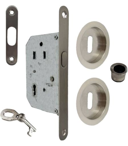 Secury-t - Serrure porte coulissante à crochet - Axe 50mm - Rosaces clé l + tire-doigts + gache