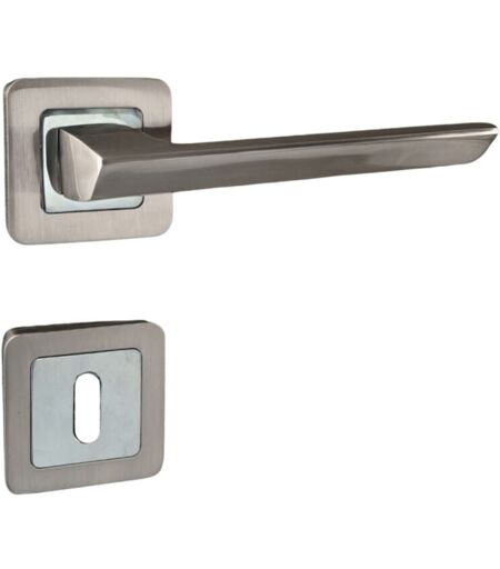 Secury-t - Poignées de porte sur rosace chromées satinées - Modèle Morgan Trou de clé l