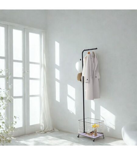 Portant à vêtement avec panier de rangement et crochets - noir Secury-t