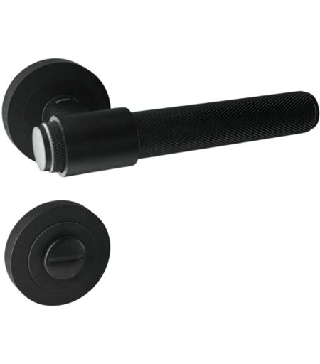 Secury-t - Poignées de porte sur rosace ronde noir mat industriel - Modèle Ema à condamnation
