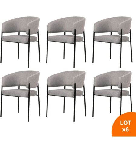 Secury-t - Lot de 6 chaises de salle à manger avec accoudoirs - tissus gris - pieds en métal noir - lou