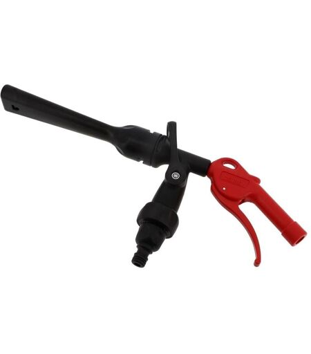 TABLEAU TECHNIQUE Consommation : 200 L/min Dimension A : 407 mm Dimension B : 21 mm Dimension C : 188 mm Dimension D : 138 mm Dimension E : 74 mm Pression de service : 6 bar Raccord : 1/4'' bsp Raccord d'entrée d'eau : 1/2'' Utilisation : Intensive Poids : 0,40 Kg Description technique : - Inversion air/eau avec débit réglable - Matériaux ultra robustes - Aucune éclaboussure - Multifonctionnel grâce à sa buse pour nettoyage de durites en option - Raccord d'entrée d'eau tournant Informations complémentaires : Offrant une pression de 10 bar grâce à sa combinaison d’air comprimé et d’eau, ce pistolet de lavage vous offrira un nettoyage d’appoint rapide, grâce à sa buse à tête large qui couvre un angle de nettoyage important et efficace. Grâce à sa gâchette d’inversion, vous pourrez très facilement passer du fonctionnement à eau au fonctionnement par air pour sécher l’objet nettoyé. Cette gâchette a également pour avantage de pouvoir interrompre le jet d’eau sans avoir à couper l’eau au ...