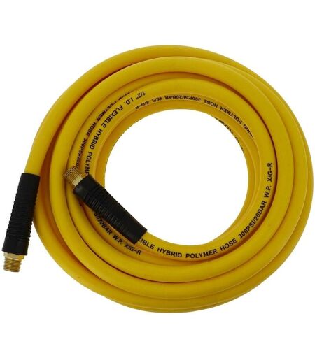 TABLEAU TECHNIQUE Liquide : Air comprimé Type : Tuyau Pression max : 20 bar Flexible : 15 m Diametre du flexible : 3/8'' - 9,5 mm Raccord entrée : M3/8'' Raccord sortie : M3/8'' Description technique : - Matière polymère haute résistance anti torsion offrant légèreté et flexibilité - Durée de vie rallongée grâce à sa composition - Enroulement facile Informations complémentaires : Conçu pour le l'alimentation d'outillages pneumatiques en air comprimé. Les matériaux utilisés lui assurent une durée de vie incomparable. ...