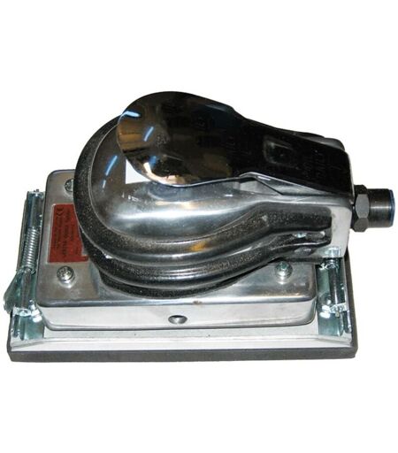 TABLEAU TECHNIQUE Vitesse à vide : 8500 tr/min Type de plateau : A pinces 170x90mm Taille de la broche : F5/16'' Excentration : 4 mm Aspiration : Non Niveau sonore dB : 85 Niveau de vibration : 3,30 m/sec² Consommation : 110 L/min Raccord : 1/4'' bspt Pression de service : 6,40 bar Utilisation : Régulière Type : Orbitale Longueur : 165 mm Hauteur : 110 mm Poids : 2,20 Kg Description technique : Plateau velcro à pinces 170 x 90 mm Informations complémentaires : Ponceuse vibrante classique, elle est surtout utile sur les surfaces planes importantes. Souvent utilisée en carrosserie PL, en menuiserie, pour les bateaux de plaisance ainsi que pour le dressage de nombreux matériaux. Son plateau équipé de pinces permet d'utiliser les abrasifs en rouleau. ...