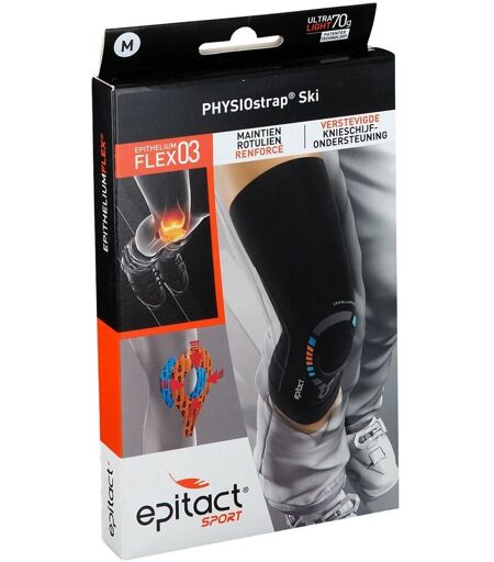 Epitact GS Protège-Genou Physiostrap Ski MediumLe port du PHYSIOstrap™ Ski EPITHELIUMFLEX® 03 contribue à stabiliser l’articulation du genou lors des mouvements de fl exions-extensions répétés durant la pratique des sports de glisse. Il aide ainsi à soulager les pathologies rotuliennes (syndrome rotulien, instabilité rotulienne, tendinopathie rotulienne…) ou les douleurs générées par les séquelles d’un traumatisme antérieur (entorse, lésion ligamentaire, méniscale…).Son double tendon de maintien en silicone breveté EPITHELIUMFLEX® associé au tissu de compression ultra performant REFLEX optimise le maintien rotulien et la stabilité du genou.Le PHYSIOstrap™ Ski agit en dynamique sans entraver le mouvement. Il peut donc être utilisé en prévention car il préserve le capital musculaire.Concentré de technologie dans moins de 70 g, le PHYSIOstrap™ Ski EPITHELIUMFLEX® 03 a été spécialement conçue pour la pratiquedes sports de glisse (ski, snowboard…). Il ne glisse pas et ne provoque aucune gêne derrière le genou (pli poplité). Extra fin, il peut se porter sous tous types de vêtements, même sous des sous-vêtements techniques (non compressifs). Comment choisir votre taille:Mesurez le contour de votre genou en position semi-fléchie en plaçant votre mètre au centre de la rotule.XS 32 < ≤ 35 cmS 35 < ≤ 38 cmM 38 < ≤ 41 cmL 41 < ≤ 44 cmXL 44 < ≤ 47 cm[youtube:OqAM2V3Epaw]IndicationContribue à stabiliser l'articulation du genou durant la pratique des sports de glisse.Application Replier les élastiques du PHYSIOstrapTM Ski vers lʼextérieur. Enfiler les mains dans le PHYSIOstrapTM Ski et positionnez les «tendons» centrés sur la rotule. Déplier les élastiques sans tendre le PHYSIOstrapTM Ski sur votre jambe. Ajuster le PHYSIOstrap® Ski en position debout et sʼassurer que les tendons sont bien positionnés à plat. Comment choisir votre taille ?Mesurez la circonférence de votre genou en position semi-fléchie en plaçant le mètre au centre de la rotule. XS S M L XL 32-35 cm 35-38 cm 38-41 cm 41-44 cm 44-47 cm ...