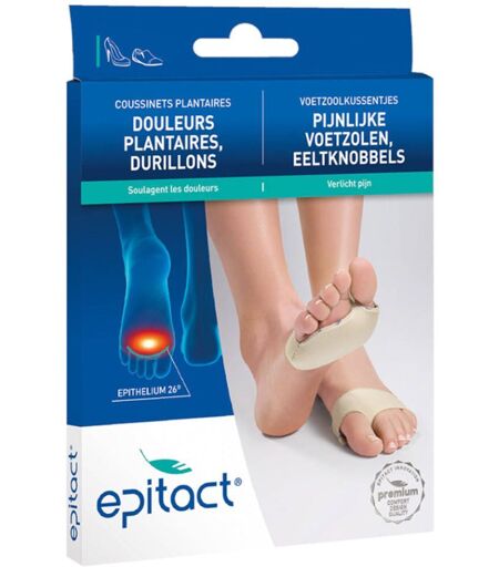 Epitact® Coussinets Plantaires Douleurs Plantaires - Durillons MediumL'Epithelium 26 est un gel de silicone breveté par des podologues dont les propriétés viscoélastiques et mécaniques sont proches de celles des tissus sous-cutanés. Il répartit le poids du corps sur l'ensemble de la zone d'appui et remplace le capiton plantaire naturel défaillant.IndicationPrévenir et soulager les douleurs sous l'avant-pied: vieillissement du capiton plantaire, sensations de brûlures, durillons...Application S M L 36-38 39-41 42-45 Si vous hésitez entre 2 tailles, choisissez la plus petite. ...