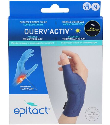 EPITACT® a créé l'orthèse souple d’activité QUERV’ACTIV™ pour accompagner et préserver le poignet durant vos activités. Ce dispositif médical est spécialement conçu pour soulager les personnes atteintes d’une tendinite de De Quervain. ...
