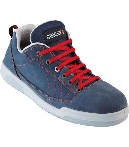 Chaussure basse de sécurité. Tige basse, cuir Nubuck hydrofuge. Embout composite 200J. Languette rembourrée confortable. Semelle de propreté en EVA antistatique et amovible. Semelle antiperforation en composite. Semelle injectée polyuréthane double densité. Coloris bleu, surpiqûre rouge. Modèle léger, souple et très esthétique. Convient aux hommes et aux femmes. La forme de la semelle de propreté garantit une excellente absorption des chocs et un grand confort. Les perforations laissent passer la transpiration afin de conserver le pied toujours au sec. La composition et la structure de la doublure Mesh laisse le pied respirer. Semelle double densité, antistatique, antidérapante, résistante aux huiles et aux hydrocarbures, réalisée par injection directe sur la tige, garantit une forte résistance aux sollicitations mécaniques. Particulièrement adapté pour les travaux de la logistique, du tertiaire. Pour tous les types de travaux nécessitant une grande mobilité et un grand confort, style ...