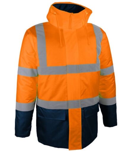 Parka haute-visibilité SINGER PARDO : protection optimale et style bicolore.Ce vêtement de signalisation assure une haute visibilité par temps mauvais grâce à ses bandes rétro-réfléchissantes. La parka est confectionnée en polyester Oxford 300D enduit polyuréthane et dotée d'une doublure et d'un rembourrage en polyester, garantissant confort et durabilité. Elle dispose de poches intérieures et extérieures, d'une capuche fixe et d'une fermeture à glissière centrale sous rabat.Avant utilisation, il est essentiel de lire le mode d'emploi et de vérifier l'état du produit. Pour toute question, contactez le service client Singer Safety®. Cette parka est homologuée selon les normes EN ISO 13688, EN ISO 20471 et EN 343-2019, assurant sa conformité aux exigences de sécurité.- - Précautions d'emploi: Avant toute utilisation, veuillez lire attentivement le mode d'emploi et le conserver. Ne jamais utiliser un produit en dehors de son domaine d'utilisation prévu. Bien que testé et certifié selon ...