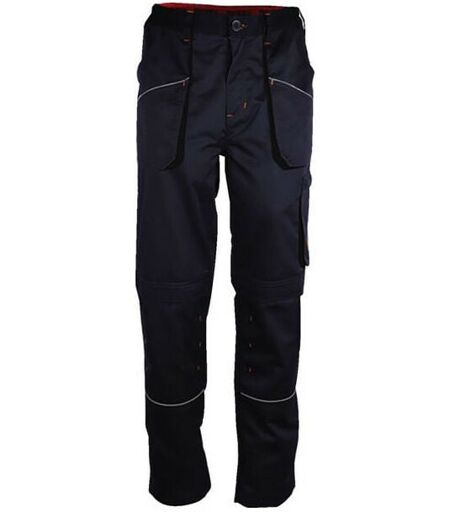 65% polyester 35% coton, 245 g/m². Élastique à la taille, nombreuses poches fonctionnelles dont une poche téléphone. Liseré rétroréfléchissant, contraste orange. Emplacements pour genouillères. Coloris : gris anthracite (GRA) Taille : 1 (S) à 6 (3XL) Norme : CE Cat II - EN 14404 porté avec les genouillères réf. 17902 Pour commander, faire suivre le code de la couleur et de la taille (ex : 103060-GRA-1). ...