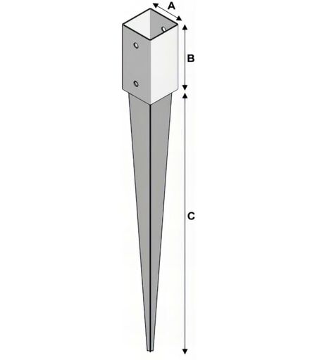 Pied de poteau de jardin 91 à enfoncer (a x b x c x ép) 91 x 150 x 600 x 2,2 mm - AL-PJE91 Alsafix