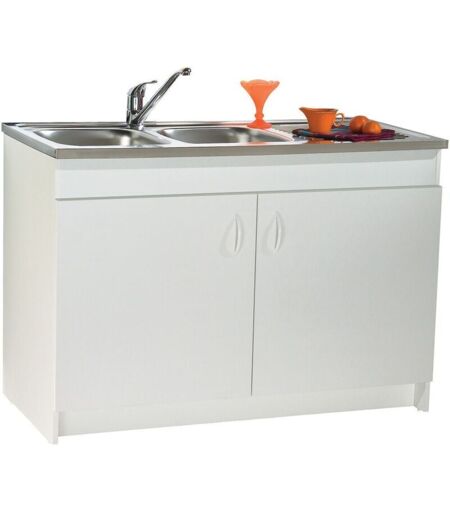 AQUARINE Meuble sous-évier 2 portes mélaminé blanc 100x60