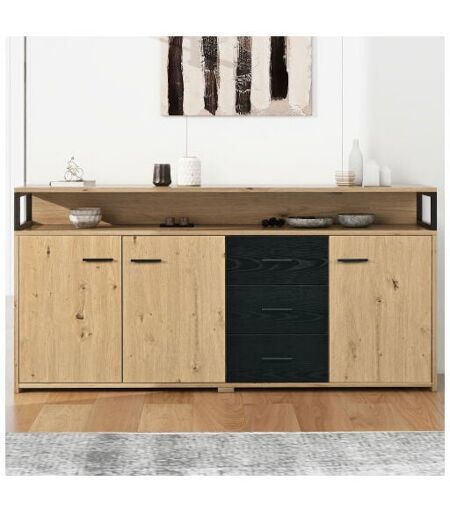 HOMMOO Buffet industriel avec trois portes et trois tiroirs, armoire de cuisine avec poignées en métal 150 x 35 x 75,9 - bois