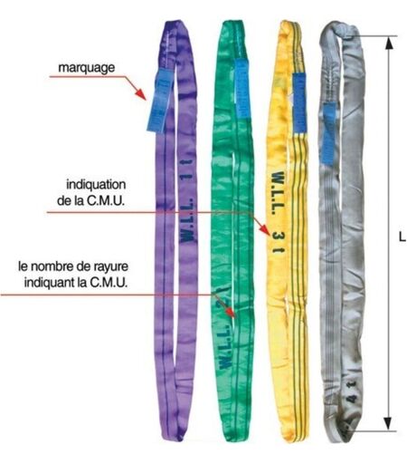 Elingue ronde textile 3 metres 4 tonnes Grise EN-1492-2 Levac