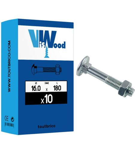 Viswood - Boulon Tête ronde collet caré - az 4.8 - Ø16 x 180 mm - Boite de 10 - 50116180