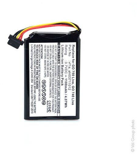 Parmi les modèles compatibles : TomTom Go 750; TomTom Go 750 Live; AHL03711012;HM9440232488;VF1A - Cette batterie neuve est assemblée avec des composants de premier choix. Ses spécifications répondent en tous points aux normes du constructeur d'origine et la batterie est garantie contre tout vice de fabrication.Pour toutes les batteries, l'écart de 0,1 volt (V) dans la tension est sans risque. La compatibilité avec votre batterie d'origine est donc parfaitement conservée. Si la capacité (Ah) proposée est plus élevée que la capacité de votre batterie d'origine, cela permet une durée d'utilisation plus importante.Dans le cadre de notre procédure qualité ISO 9001, nous procédons à des contrôles qualité réguliers sur l'ensemble de nos produits. Caractéristiques techniques : Marque : NX Garantie : 2 ans Tension : 3,7V Capacité : 1100mAh Technologie : Lithium-ion Dimensions : 53mm (L) x 35mm (l) x 6mm (h) - Poids : 40 Gr. ...