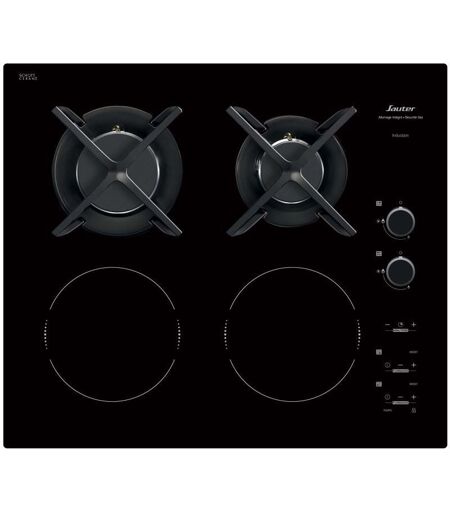 Sauter SPI6414BM - Table de cuisson mixte induction et gaz - 4 plaques de cuisson - Niche - largeur : 56 cm - profondeur : 49 cm - noir