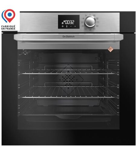 De Dietrich DOP7220X - Four encastrable noir/inox Le De Dietrich DOP7220X de la collection Fascination est un four électrique encastrable alliant élégance et performances. Doté d'une capacité totale de 73 litres, ce four au design noir/inox saura répondre à tous vos besoins en matière de cuisson. Classe énergétique : A+ Type de porte : Porte vitrée Volume utile total du four : 73 litres Fonctions : Multifonctions, auto-nettoyage à pyrolyse (3 cycles de nettoyage), 6 positions de grille Sécurité : Porte froide, verrouillage Puissance du gril : 2100 Watt Dimensions : 59.2 cm x 60.9 cm x 59.2 cm Ce four De Dietrich est équipé d'un revêtement intérieur en Enamelite, garantissant une cuisson homogène et des nettoyages facilités. Grâce à ses multiples fonctions de sécurité et à son efficacité énergétique, il répond aux normes de conformité les plus strictes (GOST, CB, Directive 65/2014/EU). En achetant le De Dietrich DOP7220X, vous bénéficiez également de 2 étagères de sûreté et d'un lèchefrite inclus. Avec ses dimensions compactes et son installation encastrable, ce four s'intègrera parfaitement dans votre cuisine, alliant praticité et esthétisme. ...
