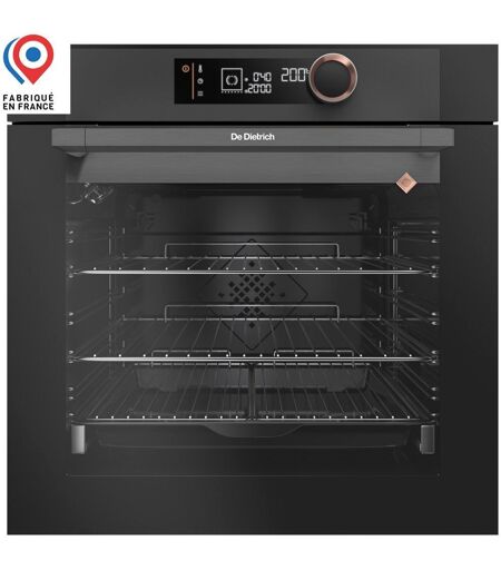 Description du produit : Le four électrique De Dietrich DOP7350A est un modèle encastrable au design élégant en satin noir. Avec un volume utile total de 73 litres, il offre une grande capacité pour cuire de délicieuses préparations pour toute la famille. Caractéristiques techniques : Classe énergétique : A+ Puissance du four : 2000 Watt Auto-nettoyage : Oui, à pyrolyse Puissance du gril : 1800 Watt Volume utile total du four : 73 litres Type de commande : Électromécanique Type du four : Electrique, multifonctions Type d'ouverture de porte : Porte abattante Fonctions de sécurité : Verrouillage, porte refroidissante Alimentation : 220 - 240 V / 50/60 Hz Dimensions et poids : Dimensions : 59.2 cm x 60.9 cm x 59.2 cm Poids : 37.5 kg Dimensions de la cavité : 46.5 cm x 37.5 cm x 32 cm Accessoires inclus : Plaque de cuisson Rails télescopiques à 3 niveaux 4 x rack Ce four De Dietrich DOP7350A allie performance, sécurité et praticité pour une expérience de cuisson optimale au quotidien. Son revêtement intérieur en Enamelite facilite le nettoyage, tandis que ses différentes fonctions garantissent une cuisson précise et homogène. Profitez d'une cuisine saine et savoureuse avec ce four électrique polyvalent et performant. ...