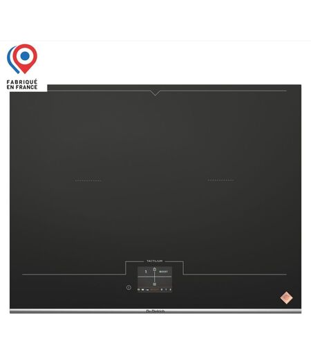 Pour ceux qui aiment faire mijoter de bons petits plats, cette table à induction DE DIETRICH DPI7698DG est l'appareil qu'il vous faut. Elle vous permet de profiter des performances de l'induction et d'un maximum de flexibilité, avec son espace de cuisson modulable. Un espace de cuisson modulable La table de cuisson DE DIETRICH DPI7698DG vous offre les performances de la technologie à induction pour une cuisson précise et performante. Large de 65 cm et dotée de 4 foyers, elle vous fait bénéficier d'un espace de cuisson modulable pour s'adapter à vos petits comme à vos grands contenants. Son dessus en vitrocéramique vous assure une répartition homogène et efficace de la chaleur. Équipée de minuteries pouvant aller jusqu'à 99 minutes, elle vous garantit un meilleur contrôle de votre temps de cuisson. Facile à utiliser et sûre La table à induction DE DIETRICH DPI7698DG est pourvue d'un écran Tactilium, une interface tactile lumineuse de 70 x 53 mm, idéale pour sélectionner facilement le foyer et la fonction désirée.Pour vous procurer un maximum de sécurité durant son fonctionnement, la table de cuisson est équipée de différents systèmes comme la détection de récipients qui empêche qu'elle ne s'enclenche si rien n'est posé dessus. Un témoin de chaleur résiduelle vous alerte également lorsque l'un des foyers est toujours chaud pour vous éviter de vous brûler. Moderne et raffiné, le design de cette table de cuisson encastrable lui permet de se fondre dans votre cuisine facilement. ...