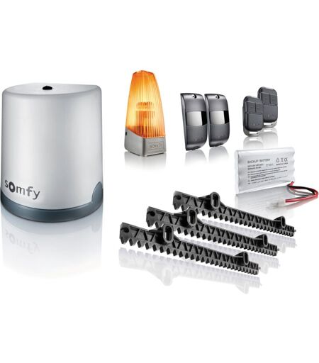 SOMFY 1241524 - Motorisation de portail coulissant Freevia Essential rts - Livrée avec 2 télécommandes Keypop, feu clignotant, 4m de crémaillère et