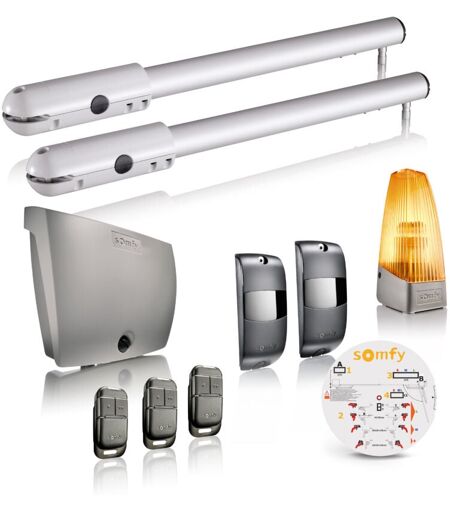 SOMFY 1241525 - Motorisation de portail battant à vérin sgs Essential rts - Livrée avec 3 télécommandes Keypop, feu orange et photocellules - Compatible