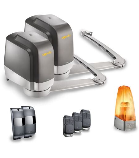 SOMFY 1241770 - Motorisation à bras Lockyvia Essential rts pour portail battant - Livrée avec 3 télécommandes Keypop, feu clignotant, et photocellules