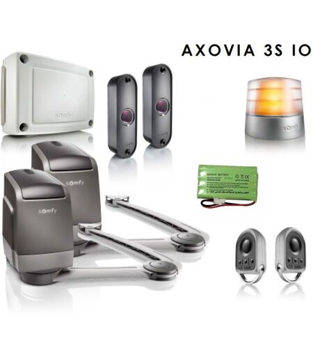 Somfy Kit Motorisation à bras Automatisme de Portail battant AXOVIA 3S IO Pack Confort - 2m 200Kg Max par vantail, Ouverture en 10 s à 90°