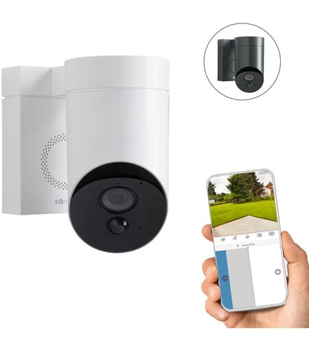 SOMFY 1875325 - Outdoor Camera blanche 2 - Caméra de surveillance extérieure wifi - 1080p Full hd - Sirène 110 dB - Branchement possible sur luminaire