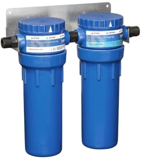 Station de filtration anti-impuretés, antitartre et anticorrosion PReT A POSER Permet de retenir les impuretés présentent dans l'eau de ville et d'éviter l'entartrage et la corrosion de vos instalations. S'installe a l'arrivée d'eau froide générale de la maison >Filtre livré tout équipé avec 2 bypass intégrés pour une installation simple et rapide 2 cartouches : - Cartouche anti-impuretés BWT DGD : retient les ...