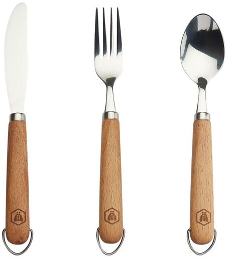 Laguiole est une marque française renommée désignant des couteaux réputés pour leur forme et pour leurs matériaux de qualité extrême. La marque à l¿abeille propose toute une gamme en matière de coutellerie qui se veut innovante, élégante et durable.Ce set de 3 couverts de pique-nique est parfait pour les sorties en plein air: 1 x Fourchette (20cm), 1 x Couteau (20cm), 1 x Cuillière (20 cm).Il permet d¿emporter d¿un coups tout l¿équipement nécessaire au bon déroulement du repas. Ces couverts sont en acier inoxydable antirouille ce qui accorde une bonne robustesse ainsi qu¿une longue durée de vie aux couverts même dans un climat humide. La qualité des couverts est complétée par un manche ergonomique en bois de hêtre spécialement conçu pour une prise en main agréable. Ce set est idéal si vous êtes à la recherche d¿un cadeau pour faire plaisir à vos proches ou vous faire plaisir. ...