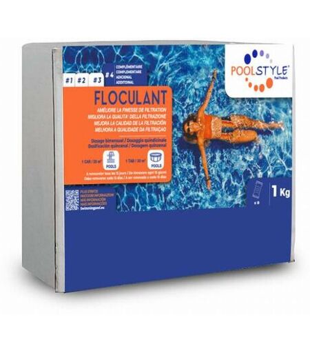 Le floculant améliore le rendement du filtre, facilite le nettoyage de l'eau, améliore l'efficacité de la désinfection et donne une couleur cristalline à l'eau. Cette méthode de traitement est préconisée quand la filtration n'empêche pas la formation de particules flottantes (L'eau se trouble). La floculation est un procédé chimique qui permet de rassembler toutes les particules les plus infimes (invisibles à l'œil humain) pour qu'elles forment de plus grosses particules et qu'elles soient ensuite filtrées. Conditionnement 1Kg Le floculant améliore le rendement du filtre, facilite le nettoyage de l'eau, améliore l'efficacité de la désinfection et donne une couleur cristalline à l'eau. Cette méthode de traitement est préconisée quand la filtration n'empêche pas la formation de particules flottantes (L'eau se trouble). La floculation est un procédé chimique qui permet de rassembler toutes les particules les plus infimes (invisibles à l'œil humain) pour qu'elles forment de plus grosses ...