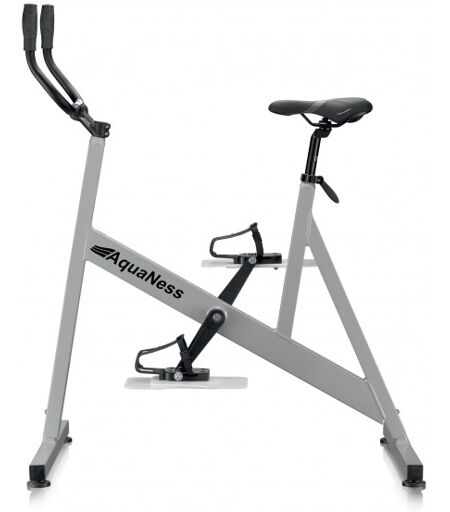 Vous aimez faire de l'aquabiking ? Ne le faites pas avec n'importe quel vélo : choisissez l'aquabike Aquaness V1, le vélo aquatique qui allie robustesse et légèreté. Découvrez le Vélo aquatique Aquaness V1 Aquabiking Idéal pour débuter l'aquabiking à domicile ! Ultra léger et robuste, le Vélo aquatique Aquaness V1 est idéal pour débuter la pratique de l'aquabike à domicile. Grâce à sa plateforme de pédale réglable, vous pourrez vous exercer avec plus ou moins d'effort lors du pédalage avec une meilleure résistance à l'eau. Sa résistance de freinage est caractérisée par la présence de 4 pales sous les pédales à écartement variables à régler avant la séance. Il est doté d'un guidon classique orientable et d'une selle réglable en hauteur. Son poids est de 10,1 kg. Les réglages et variations sont possibles pendant la séance. [fsm display="image" ids="1491" link="0"] Coloris disponibles Blanc, Gris Alu, Gris ardoise, Verre d'eau, Bleu ciel, Bleu clair, Jaune, Rose, Rouge [fsm display="image" ids="1492" link="0"] Caractéristiques techniques du Vélo aquatique Aquaness V1 Aquabiking Résistance au pédalage : Pales sous les pédales, écartement variable à régler avant ou après la séance Pédales : Anatomiques avec voute plantaire pour pédalage pieds nus (en néoprène avec sangle à pince) Guidon : Modèle classique "Aqua", orientable et réversible Protection au sol : Tampons (patins) diam. 60mm, pour tous les types de revêtements Hauteur d'eau recommandée : 1m10 minimum Matériau : Aluminium série 6000 de qualités marines (cadre, guidon, pédalier) Peinture : Epoxy bi-composant, haute résistance au sel comme au chlore (thermo-laquage) Anode sacrificielle : anti-corrosion Poids : 10 kg Dimensions du Vélo aquatique Aquaness V1 Aquabiking Largeur barre avant ou arrière (pied) : 66 cm Distance entre le pied avant et le pied arrière : 98 cm Hauteur variable sol-selle : de 82 à 107 cm (+25 cm) Hauteur sol-haut du guidon : 135 cm Distance sol-axe du pédalier : 40 cm [fsm display="image" ids="1490" link="0"] ...