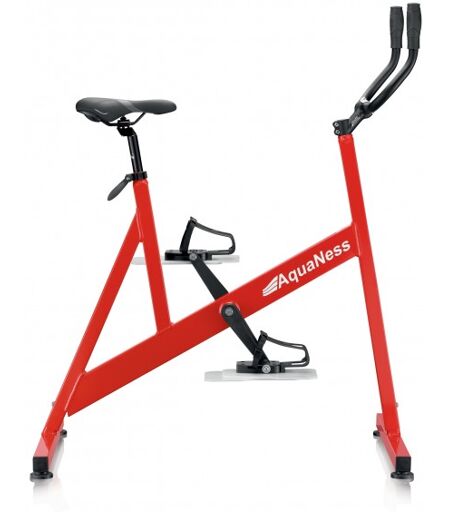 Vous aimez faire de l'aquabiking ? Ne le faites pas avec n'importe quel vélo : choisissez l'aquabike Aquaness V1, le vélo aquatique qui allie robustesse et légèreté. Découvrez le Vélo aquatique Aquaness V1 Aquabiking Idéal pour débuter l'aquabiking à domicile ! Ultra léger et robuste, le Vélo aquatique Aquaness V1 est idéal pour débuter la pratique de l'aquabike à domicile. Grâce à sa plateforme de pédale réglable, vous pourrez vous exercer avec plus ou moins d'effort lors du pédalage avec une meilleure résistance à l'eau. Sa résistance de freinage est caractérisée par la présence de 4 pales sous les pédales à écartement variables à régler avant la séance. Il est doté d'un guidon classique orientable et d'une selle réglable en hauteur. Son poids est de 10,1 kg. Les réglages et variations sont possibles pendant la séance. [fsm display="image" ids="1491" link="0"] Coloris disponibles Blanc, Gris Alu, Gris ardoise, Verre d'eau, Bleu ciel, Bleu clair, Jaune, Rose, Rouge [fsm display="image" ids="1492" link="0"] Caractéristiques techniques du Vélo aquatique Aquaness V1 Aquabiking Résistance au pédalage : Pales sous les pédales, écartement variable à régler avant ou après la séance Pédales : Anatomiques avec voute plantaire pour pédalage pieds nus (en néoprène avec sangle à pince) Guidon : Modèle classique "Aqua", orientable et réversible Protection au sol : Tampons (patins) diam. 60mm, pour tous les types de revêtements Hauteur d'eau recommandée : 1m10 minimum Matériau : Aluminium série 6000 de qualités marines (cadre, guidon, pédalier) Peinture : Epoxy bi-composant, haute résistance au sel comme au chlore (thermo-laquage) Anode sacrificielle : anti-corrosion Poids : 10 kg Dimensions du Vélo aquatique Aquaness V1 Aquabiking Largeur barre avant ou arrière (pied) : 66 cm Distance entre le pied avant et le pied arrière : 98 cm Hauteur variable sol-selle : de 82 à 107 cm (+25 cm) Hauteur sol-haut du guidon : 135 cm Distance sol-axe du pédalier : 40 cm [fsm display="image" ids="1490" link="0"] ...