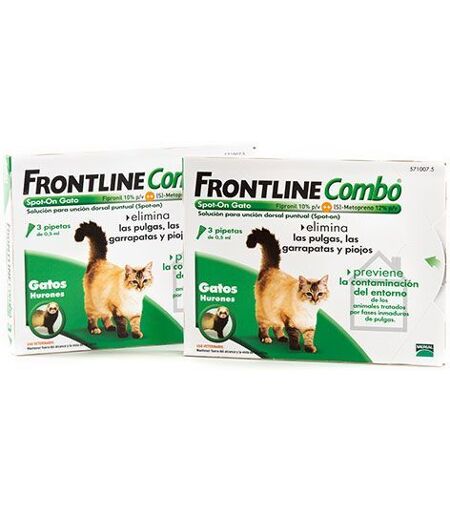 Pipettes antiparasitaires Frontline Spot On pour chats.Frontline Combo est un produit qui développe les toutes dernières méthodes de technologie vétérinaire afin de prévenir et traiter les tiques, poux et puces de vos animaux.Produit conseillé pour:Les propriétaires d'animaux de compagnie qui souhaitent protéger leur chat des poux, puces et tiques.Les clients qui préfèrent l'option d'une application spot-on. Front Line Combo est l'option la plus sûre parmi tous les produits antiparasitaires présents sur le marché, car il agit de façon rapide et par contact, en éliminant les puces, tiques et poux de la peau de votre animal, grâce au pouvoir insecticide/acaricide de sa molécule unique brevetée, le fipronil. Ce produit tue les puces (Ctenocephalides) en 24h, les tiques (des familles Dermacentor, Rhipicephalus sanguineus, Ixodes et Haemaphysalis) et les poux (Trichodectes canis) en 48h après leur exposition au produit. Ses propriétés lui permettent d'agir sur plusieurs points du système ne... ...