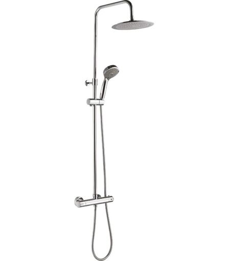 Cette superbe colonne de douche chromée embellira tout à fait votre salle de bain. Elle est de plus équipée d'un thermostatique et vous permet une réelle économie d'eau. Elle reste garantie 5 ans et 1 an pour les composants. COLONNE DE DOUCHE : - Colonne de douche chromé - Hauteur ajustable - Tube rond extensible 820-1150mm - Cartouche de régulation unique - Débit tête céramique ½ tour - Mitigeur douche mural thermostatique - Support douchette ajustable - Entraxe de la robinetterie 150 mm double sortie - Inverseur intégré dans la manette ouverture/fermeture - Sécurité anti brûlure 38°C - Fourni avec raccords excentriques et rosaces. COMPATIBILITE : - Fonctionne uniquement avec chauffe-eau électrique à accumulation de type cumulus (chauffe eau classique qui fonctionne une fois par nuit / généralement sur les heures creuses). Non compatible avec production d'eau chaude instantanée type chaudière à gaz, chauffage collectif, système thermodynamique de type semi-accumulation plat ou ...