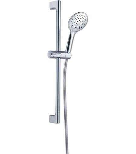 L'ensemble de douche chromé Circle se révèlera être un réel atout pour votre salle de bain. La douchette est permet 3 jets différents. Ce kit chromé est certifié ACS et est garanti 2 ans ! DOUCHETTE : - Douchette chromée en ABS. - Douchette 3 jets : actionné par un bouton. - Avec picots anticalcaires en silicone pour un nettoyage facile. - Valve limiteur de débit. - Barre de douche inox chromée : Longueur 765 mm, diamètre 22 mm - Coulisseau en ABS - Flexible PVC gris 150 cm NORMES : - Certification ACS : Accréditation de Conformité Sanitaire. GARANTIE : Nos produits sont garantis de 2 ans contre tout vice de fabrication, la date d’achat faisant foi et 1 an concernant l’état de surface. Notre responsabilité ne peut être engagée dans les cas suivants : - Installation ou usage impropre du produit. - Utilisation de produits d’entretien non adaptés (corrosifs, abrasifs, solvants, acides, etc…) - Dommages quels qu’ils soient ; occasionnés par la présence de corps étrangers véhiculés par ...