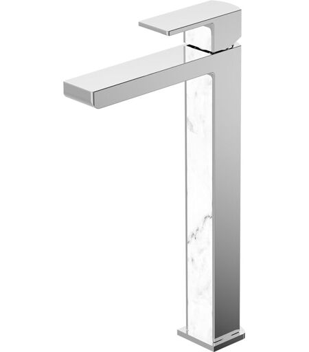 Essebagno - Mitigeur lavabo haut Essemarmo chrome et blanc façon marbre